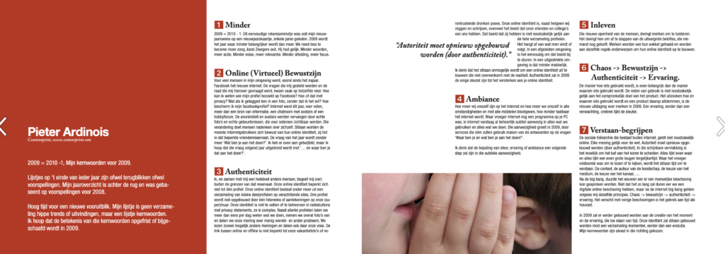 Het artikel sloot af met ‘In 2009 zal er verder gewerkt worden aan de creatie van het moment’.